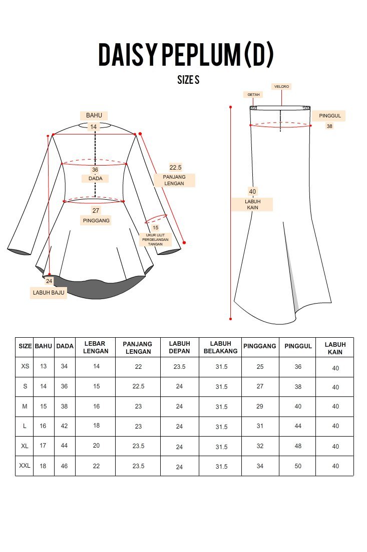 - Pinggang kain : Getah pinggang + Velcro