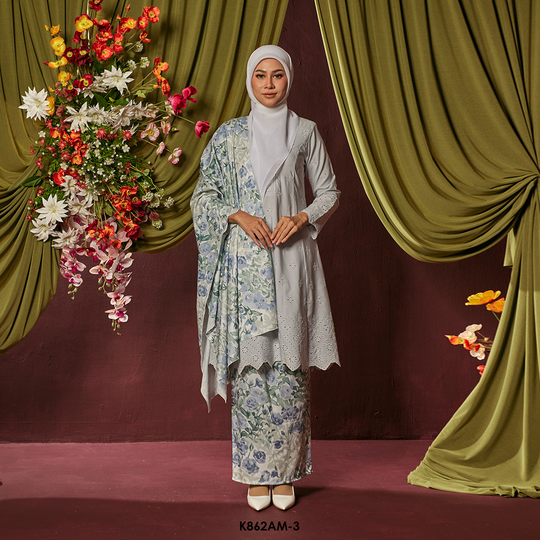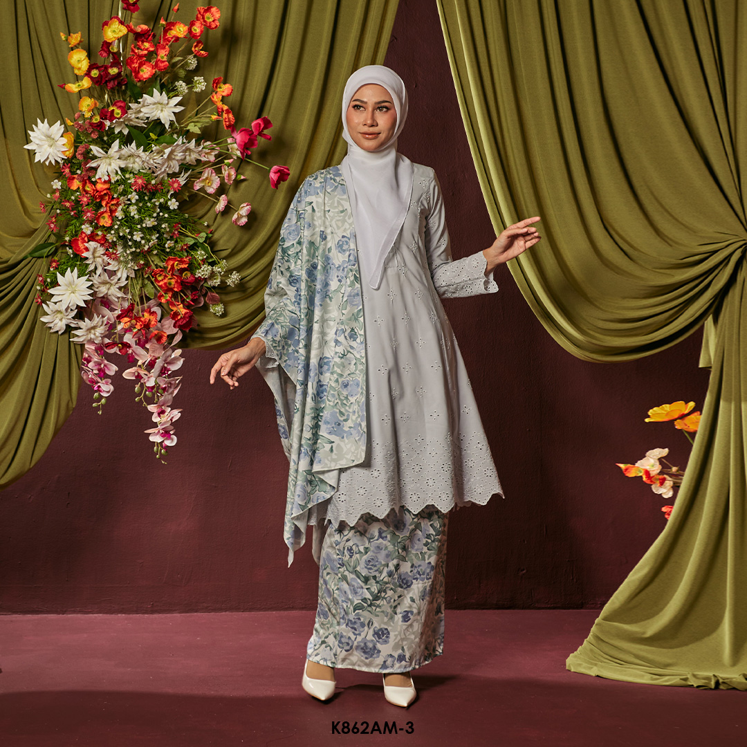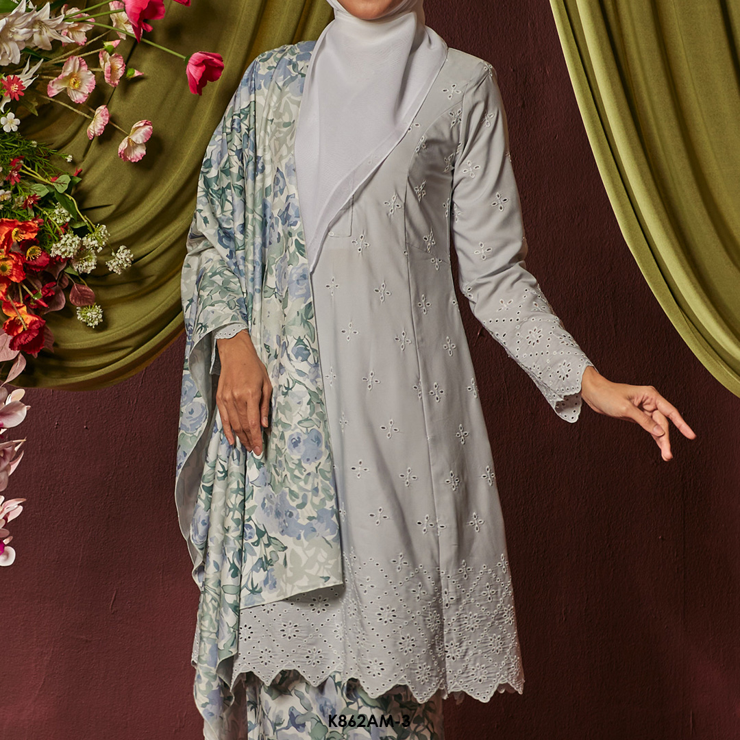 Ameera Kurung With Shawl in Grey (K862AM-3) Ameera Kurung With Shawl in Grey (K862AM-3)
