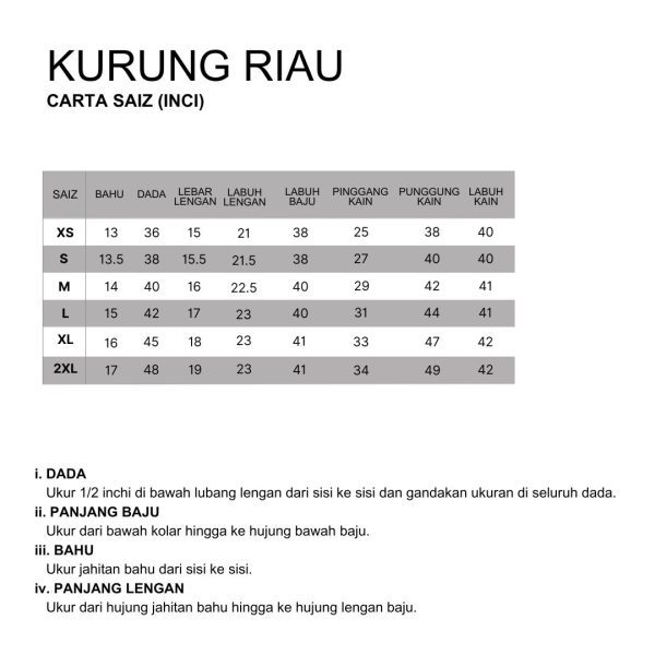 - Pinggang kain jenis separuh getah dibahagian belakang.